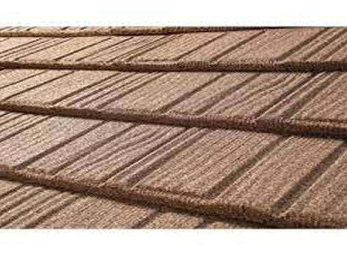 This is a kind of steel tile that imitates the grain of the wood, matching the color of wood, can be authentic. Houses have been roofed with wood for centuries. But the emergence of stone-coated steel roofing tiles, which were welcomed by many, began to replace wooden roofs. The emergence of wood grain stone-coated steel roof tiles has met the needs of some customers who like wood.As the roof hanger of this product is wider than that of other metal roof tiles, it realizes convenient installation while reducing the installation time. Dimple's straight pattern increases the grandeur of buildings